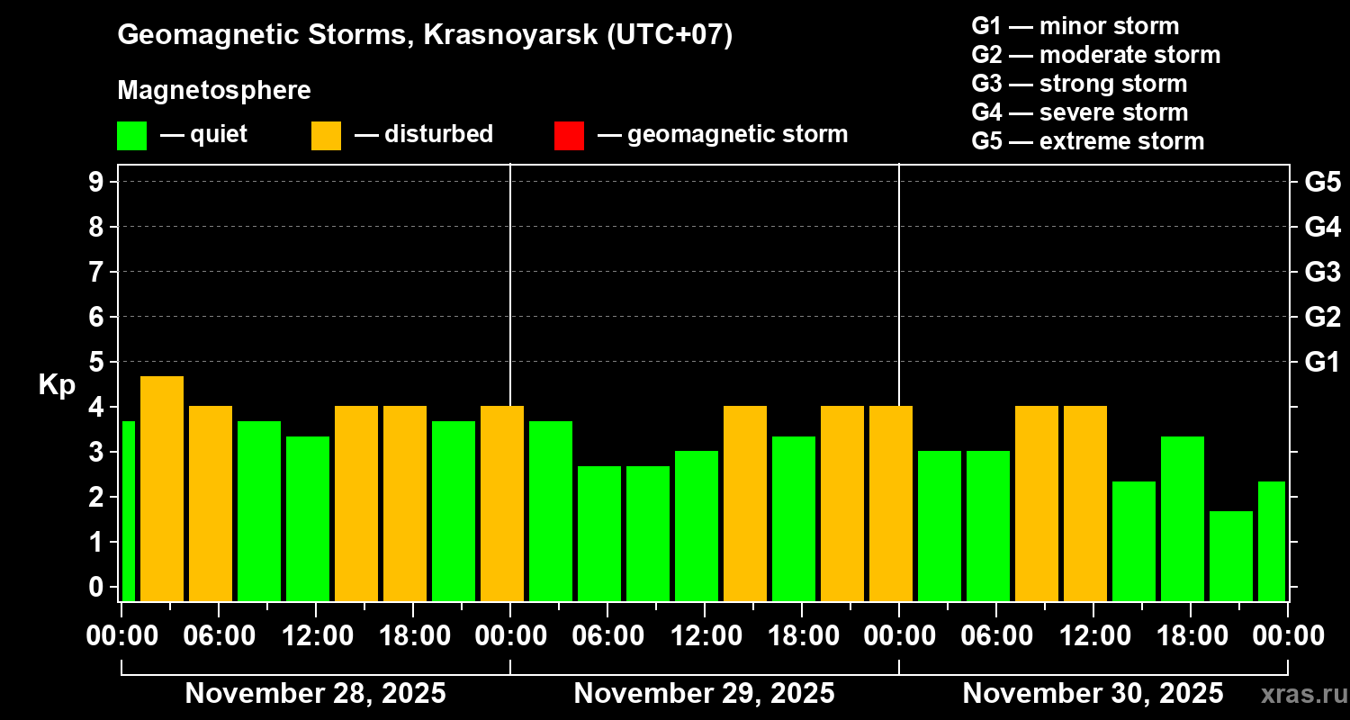 Geomagnetic storms in Krasnoyarsk — Nov 30, 2025