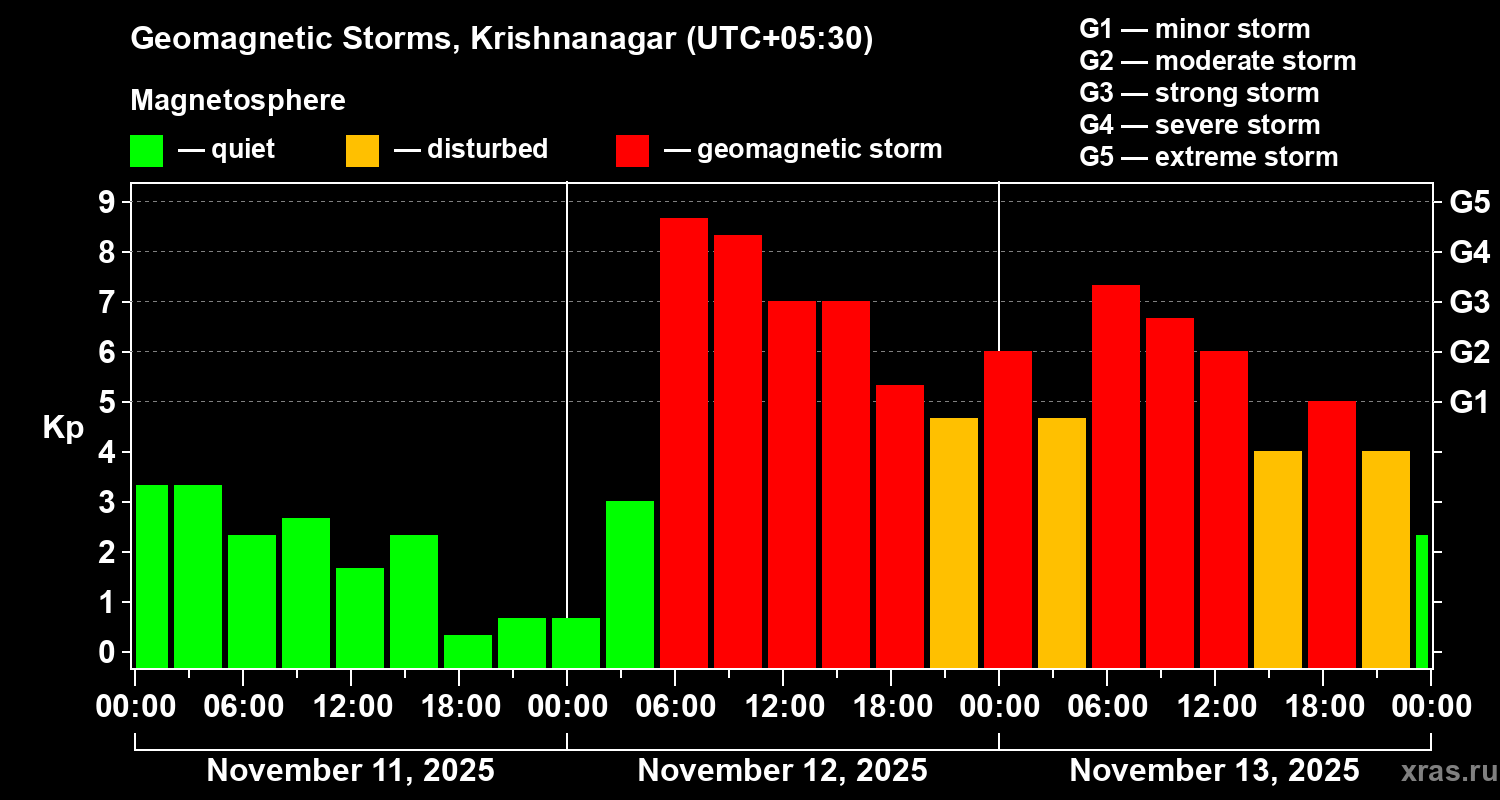 Geomagnetic storms in Krishnanagar in November 2025