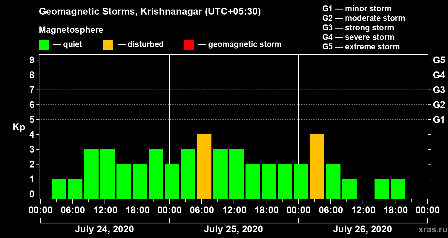 Geomagnetic storms in Krishnanagar — Jul 26, 2020