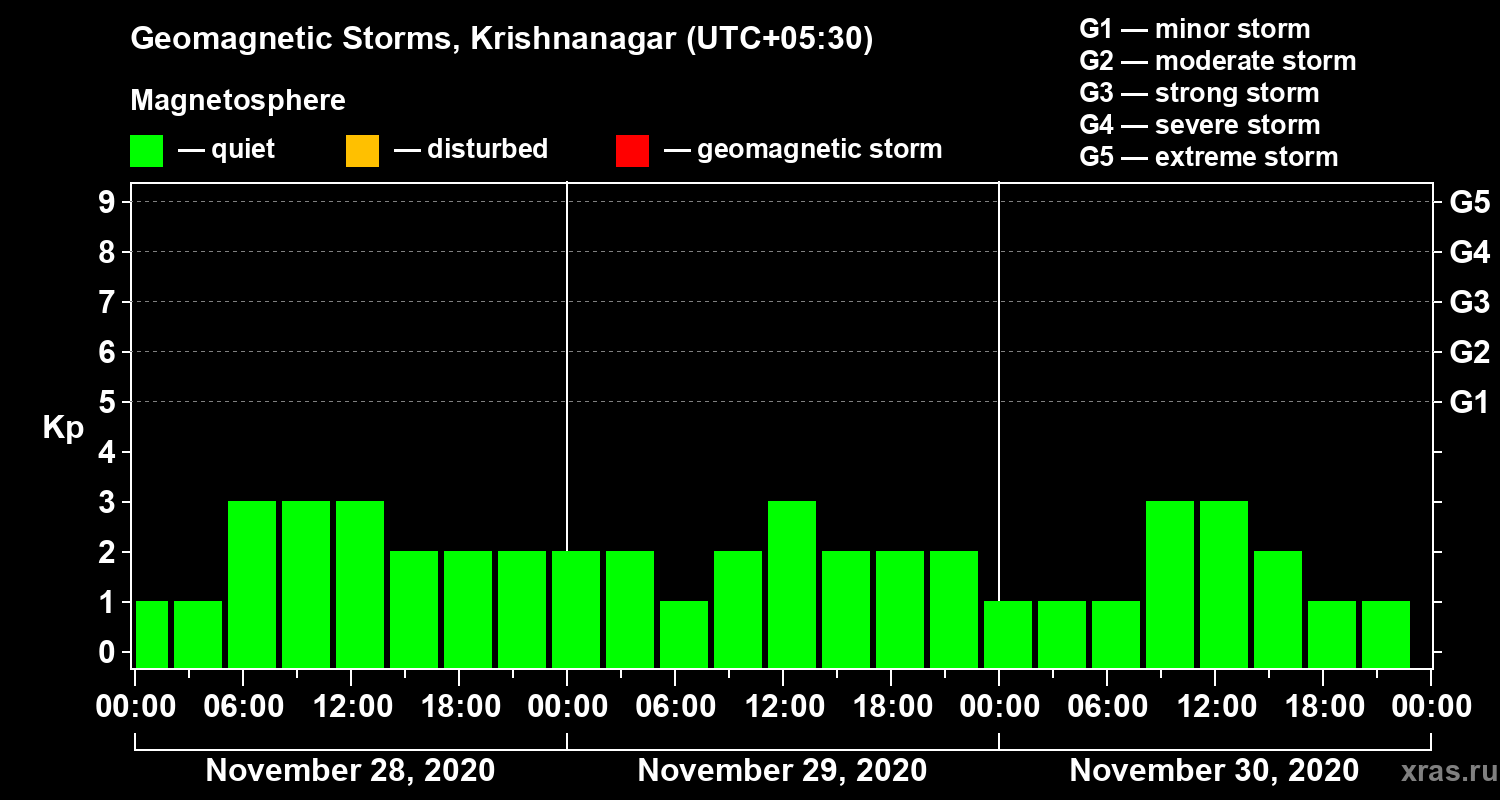 Geomagnetic storms in Krishnanagar — Nov 30, 2020