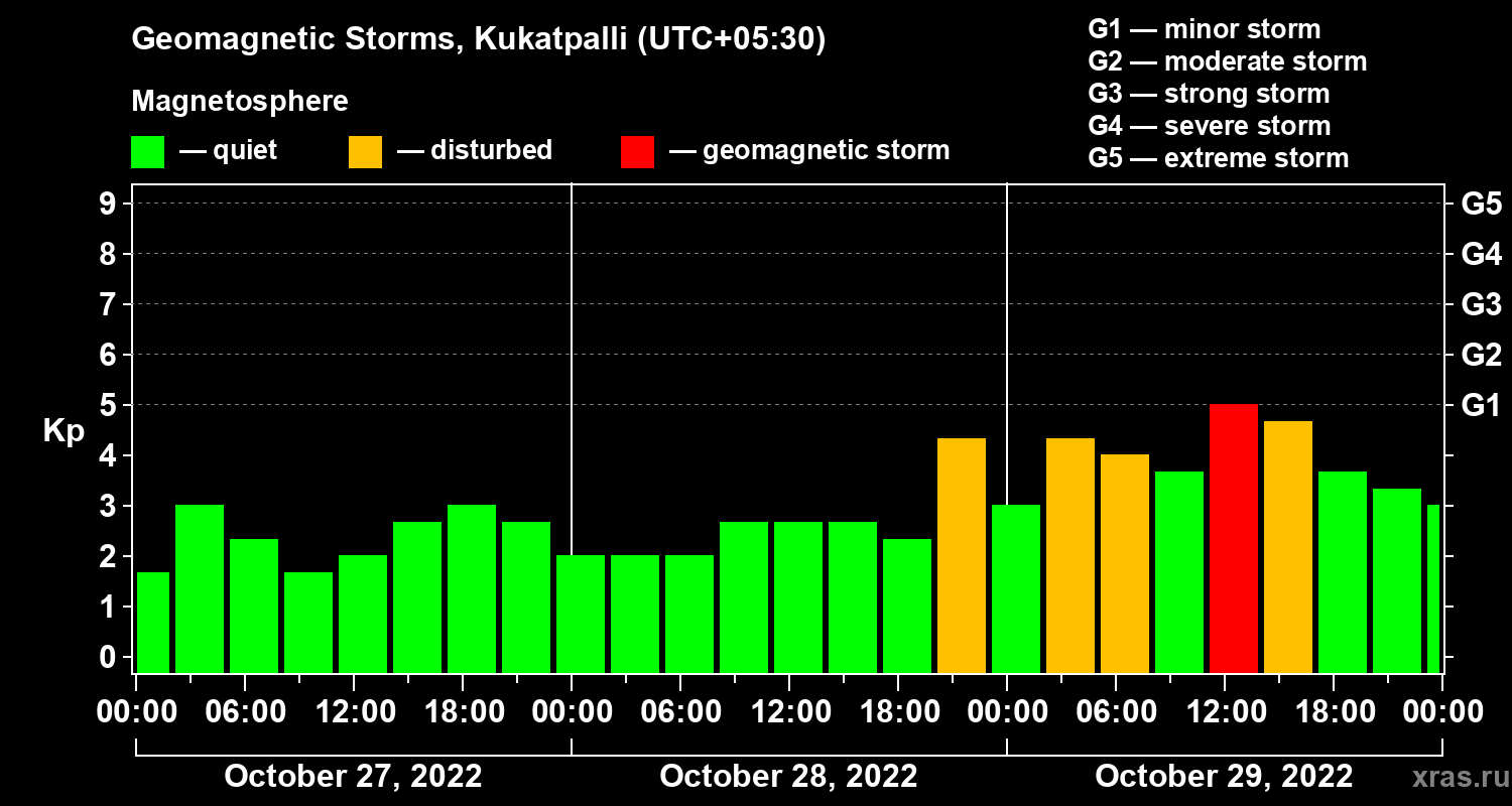 Geomagnetic storms in Kukatpalli — Oct 29, 2022
