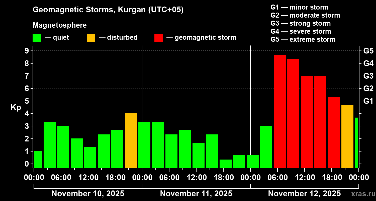 Geomagnetic storms in Kurgan — Nov 12, 2025
