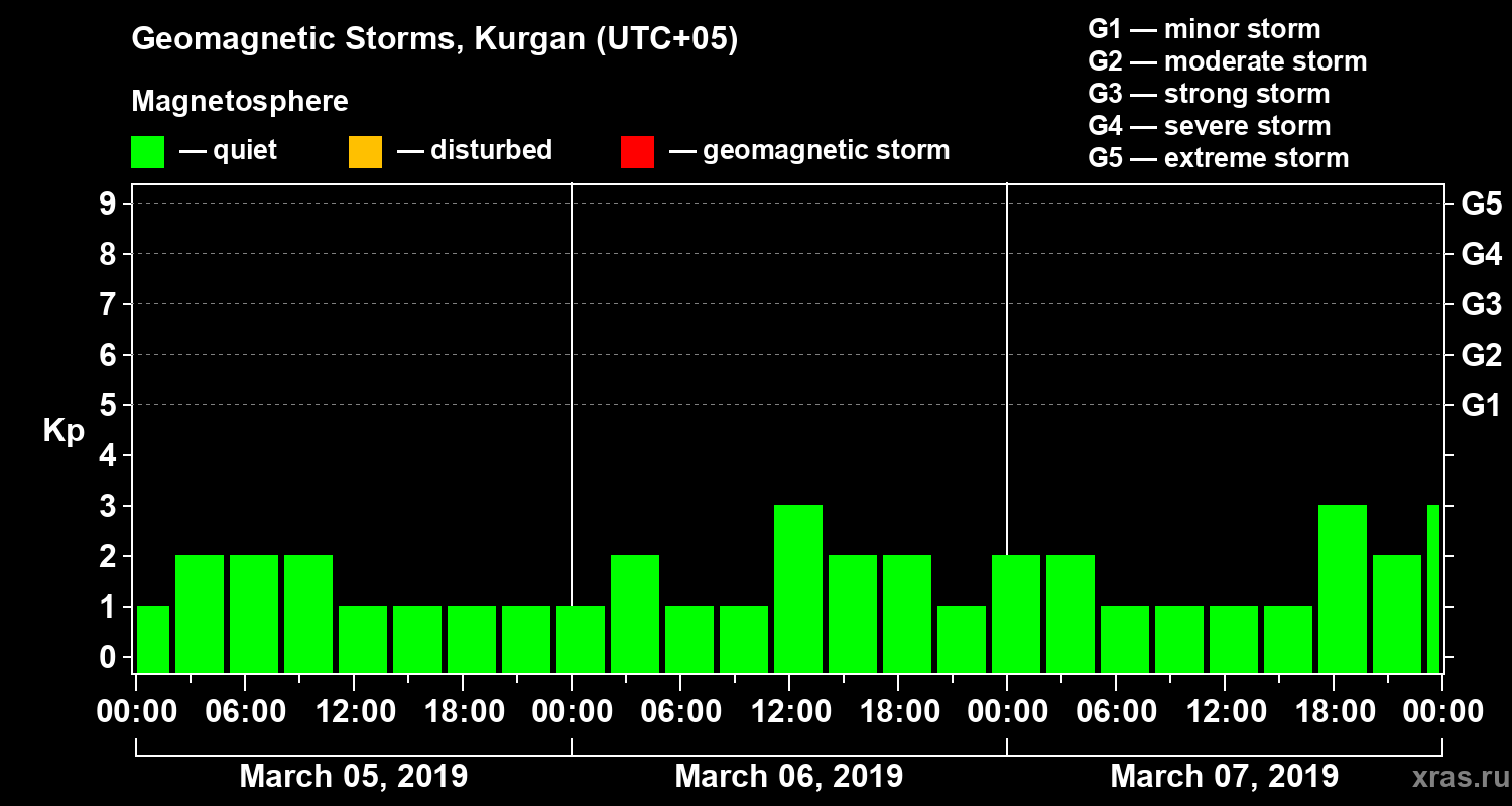 Geomagnetic storms in Kurgan on Mar 07, 2019