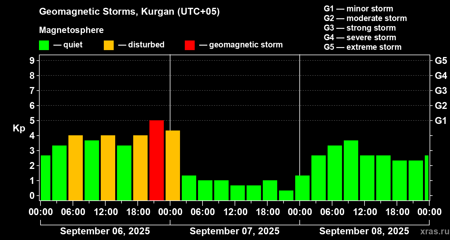 Geomagnetic storms in Kurgan — Sep 08, 2025