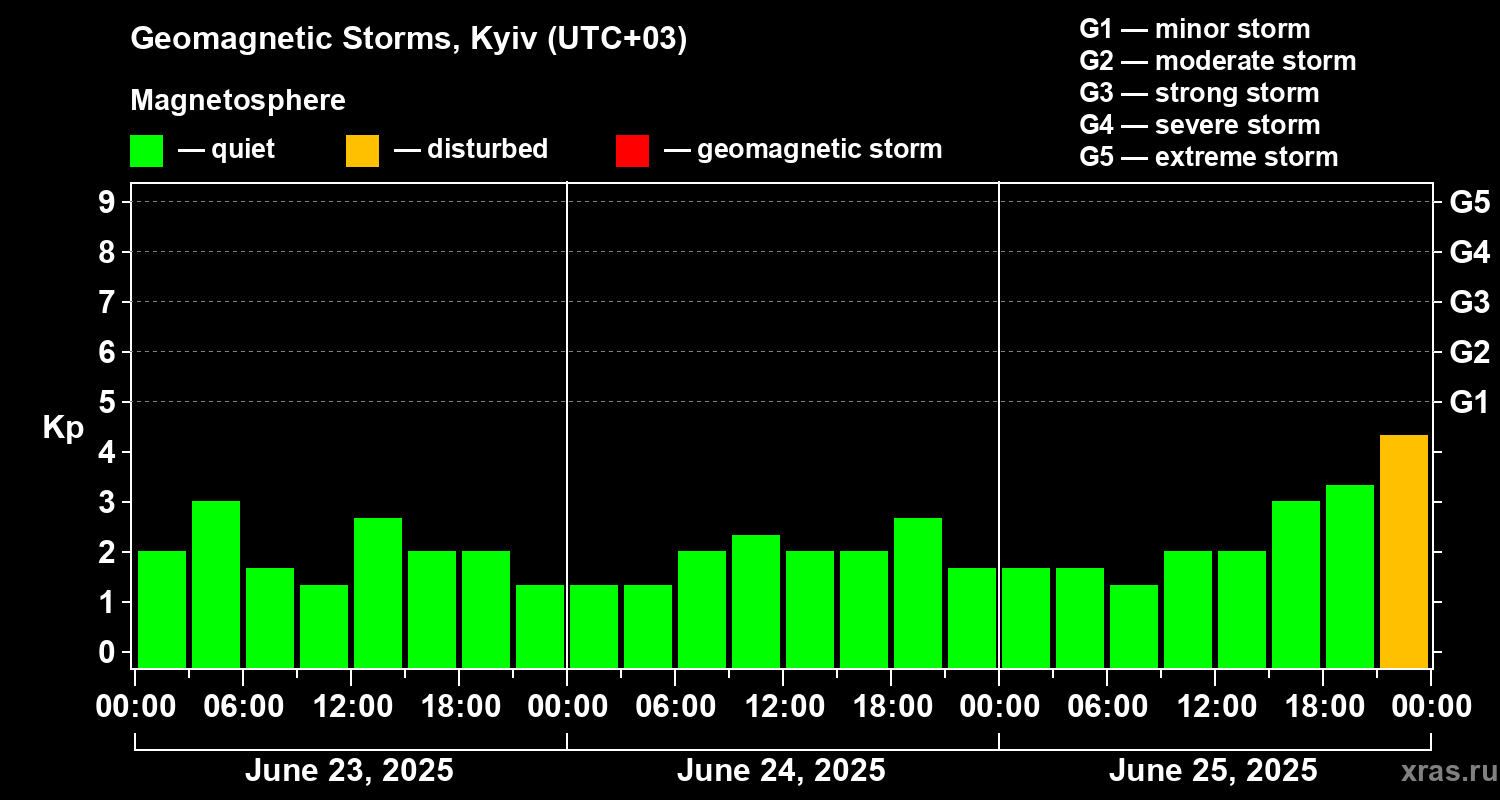 Geomagnetic storms in Kyiv on Jun 25, 2025
