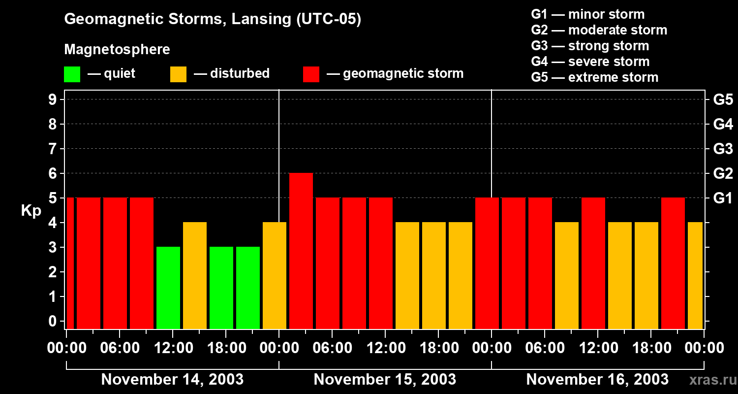 Geomagnetic storms in Lansing — Nov 16, 2003