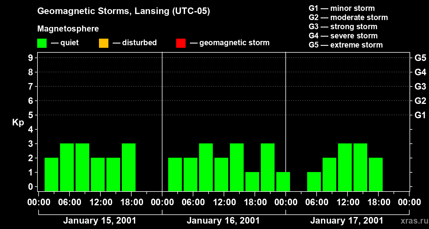 Geomagnetic storms in Lansing on Jan 17, 2001