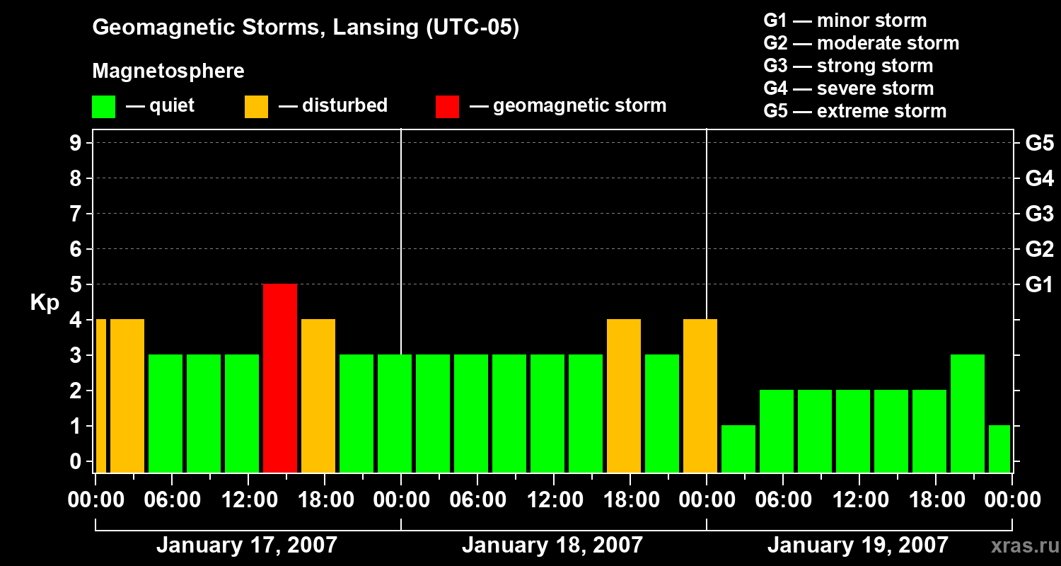 Geomagnetic storms in Lansing on Jan 19, 2007