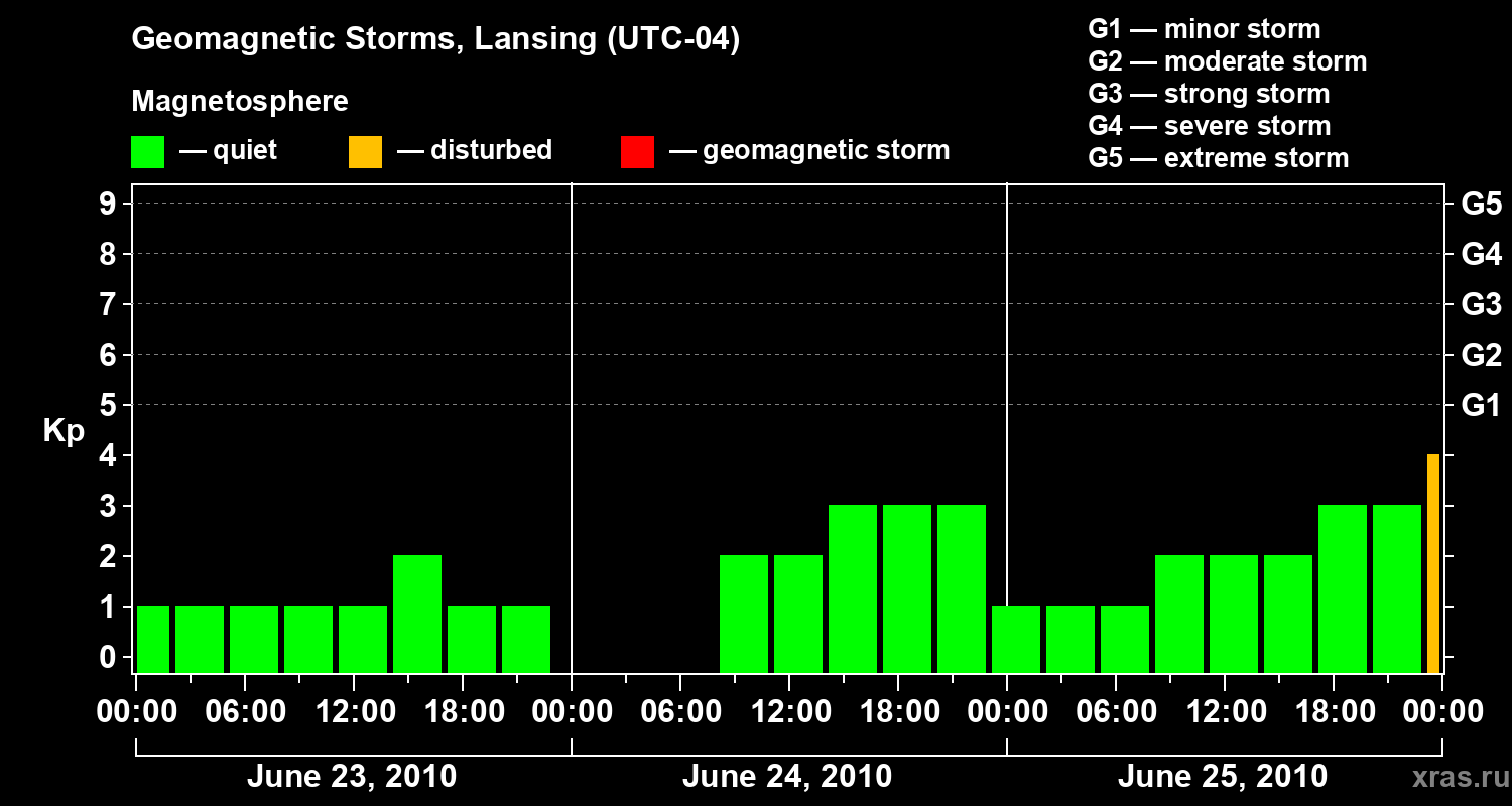 Geomagnetic storms in Lansing — Jun 25, 2010