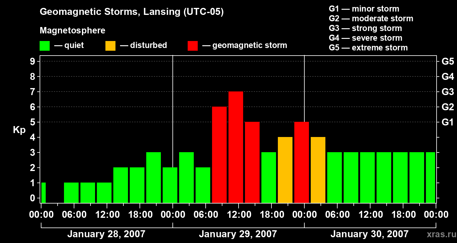 Geomagnetic storms in Lansing on Jan 30, 2007