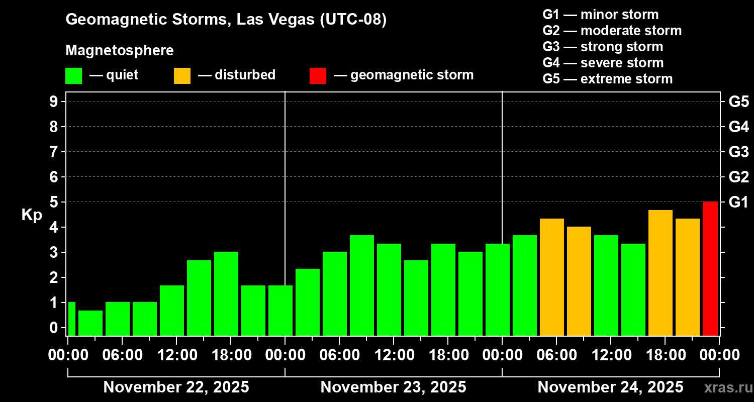 Geomagnetic storms in Las Vegas — Nov 24, 2025
