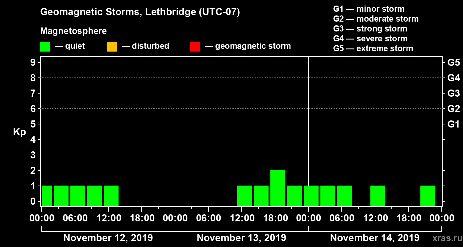Geomagnetic storms in Lethbridge on Nov 14, 2019