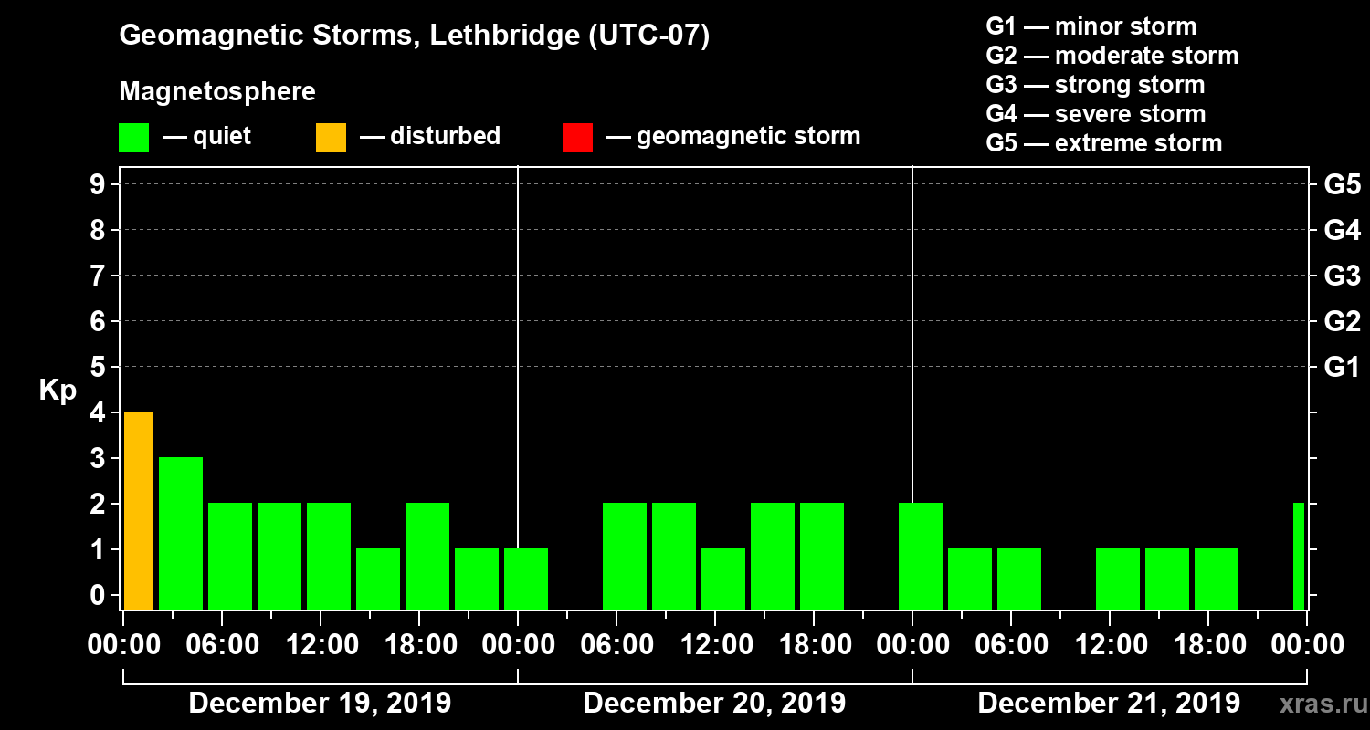 Geomagnetic storms in Lethbridge on Dec 21, 2019