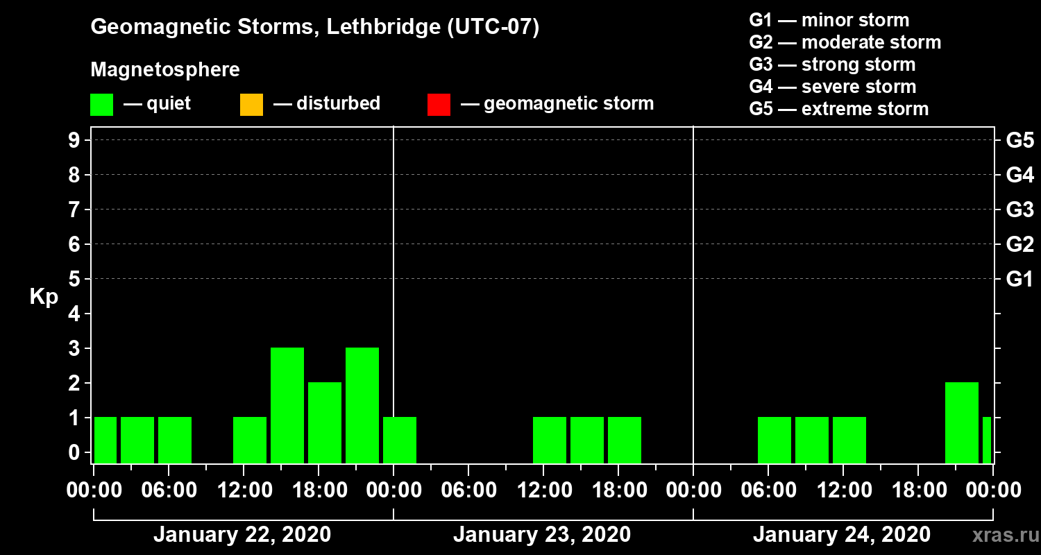 Geomagnetic storms in Lethbridge — Jan 24, 2020
