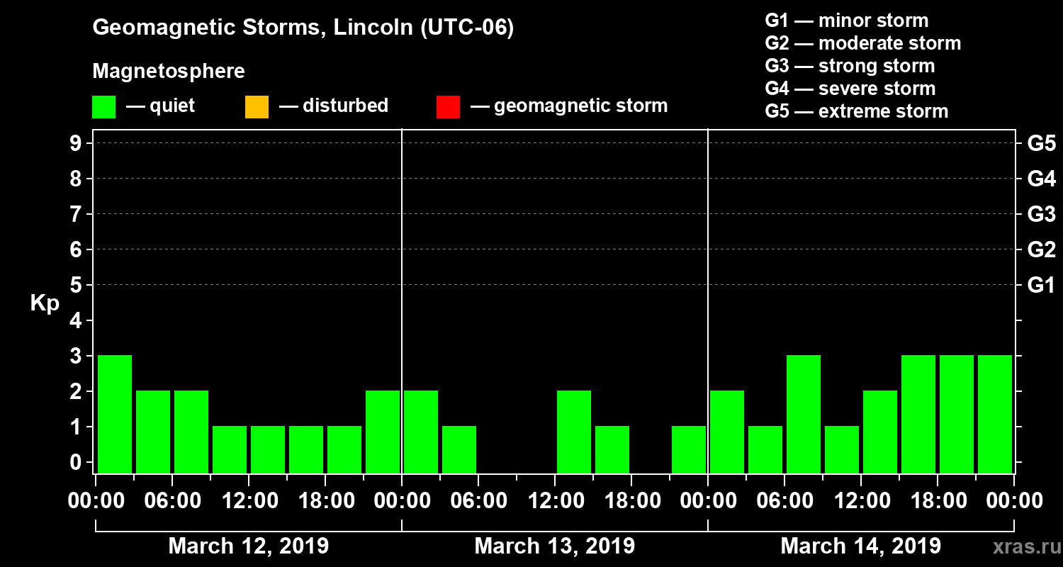 Geomagnetic storms in Lincoln in March 2019