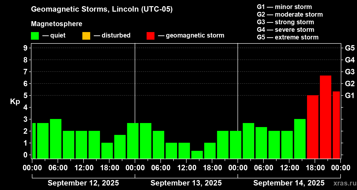 Geomagnetic storms in Lincoln — Sep 14, 2025