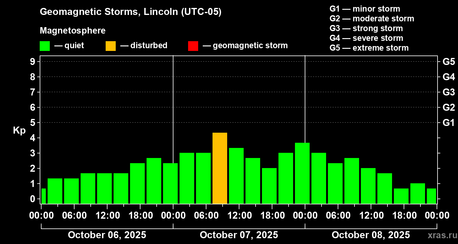 Geomagnetic storms in Lincoln — Oct 08, 2025