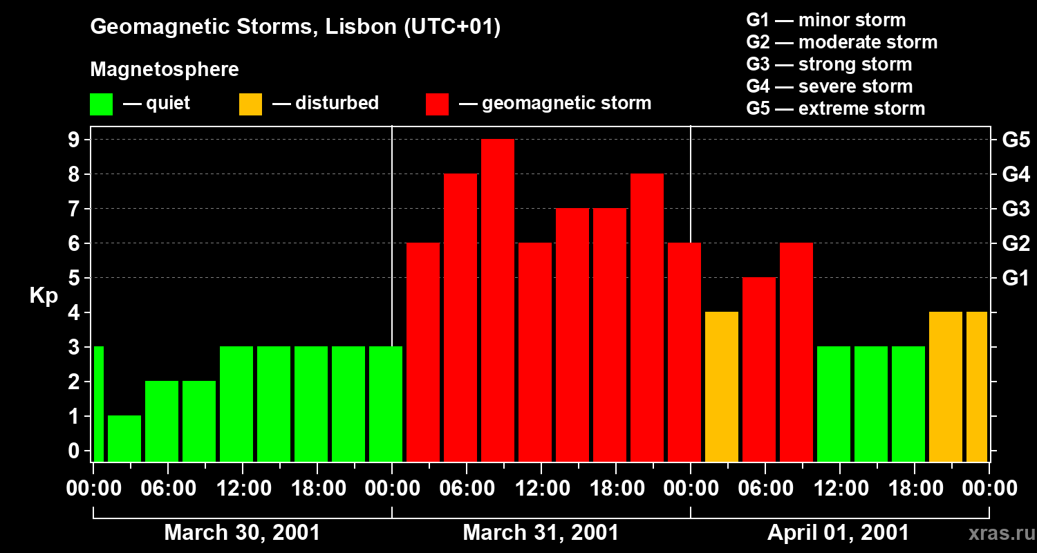 Geomagnetic storms in Lisbon on Apr 01, 2001