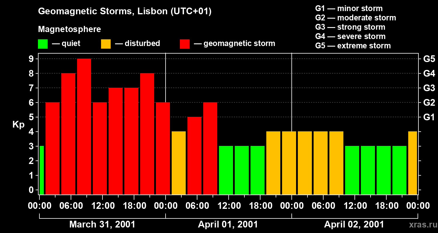 Geomagnetic storms in Lisbon on Apr 02, 2001