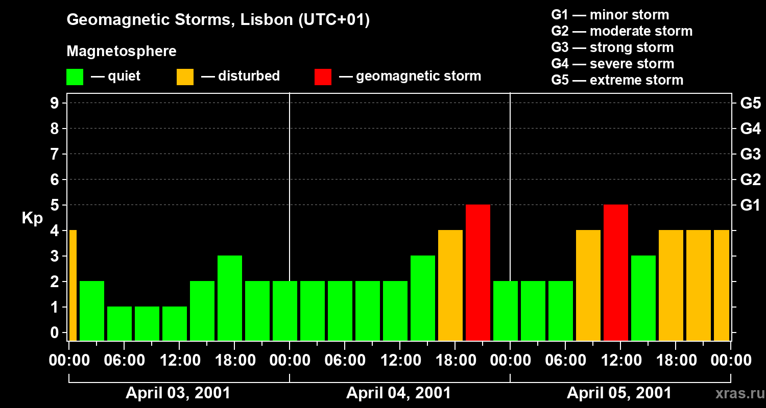 Geomagnetic storms in Lisbon on Apr 05, 2001