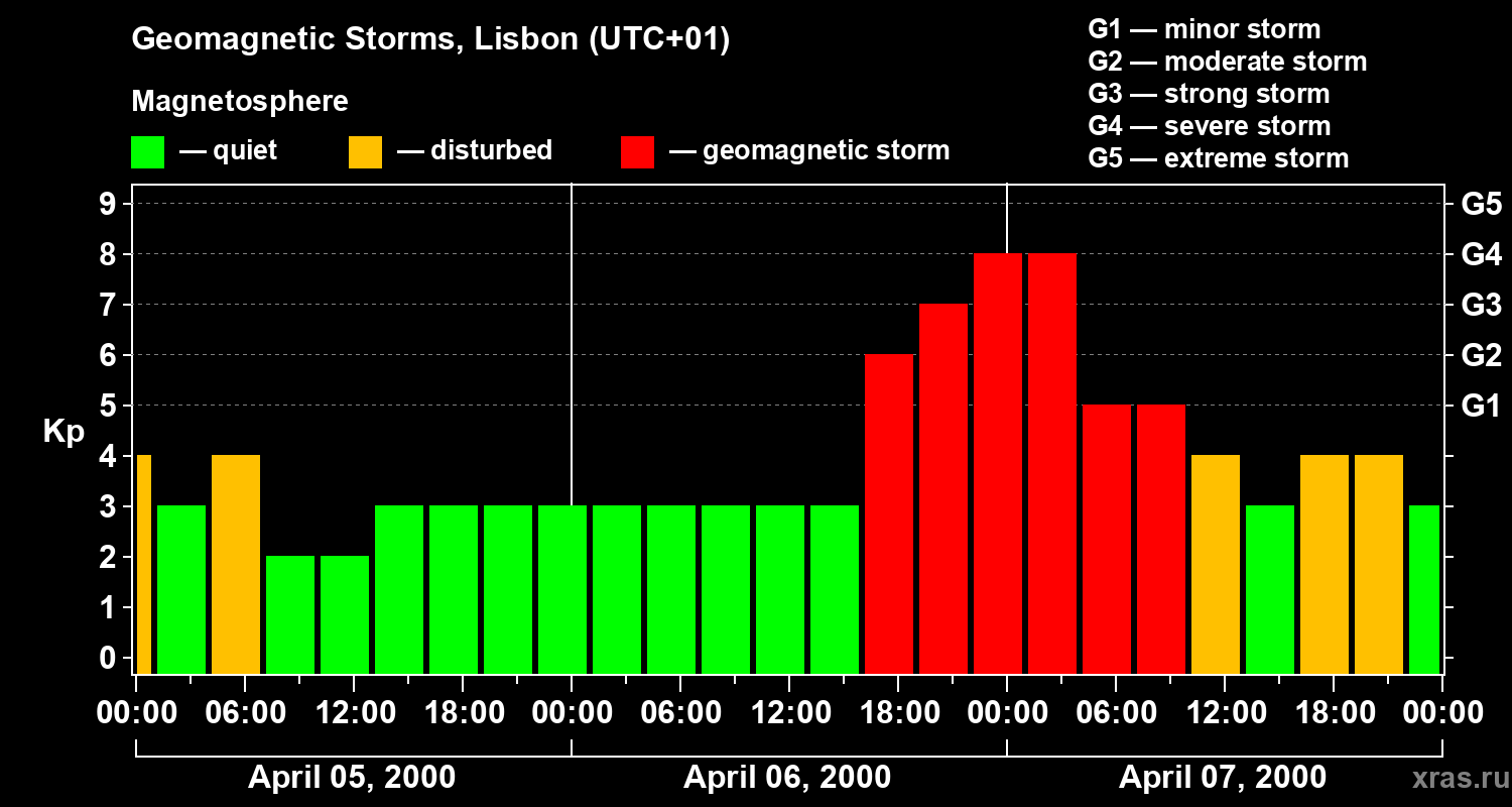 Geomagnetic storms in Lisbon on Apr 07, 2000