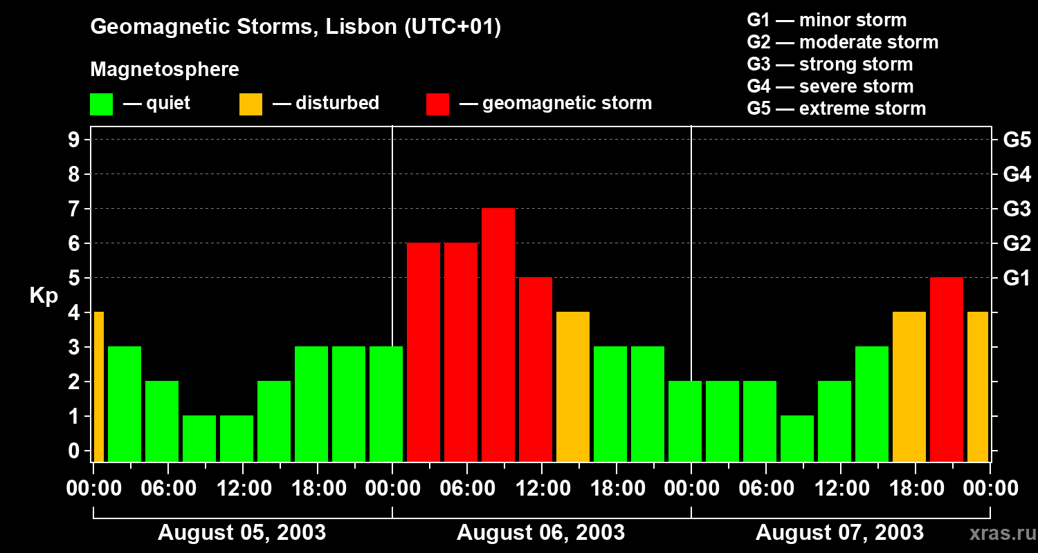 Geomagnetic storms in Lisbon on Aug 07, 2003
