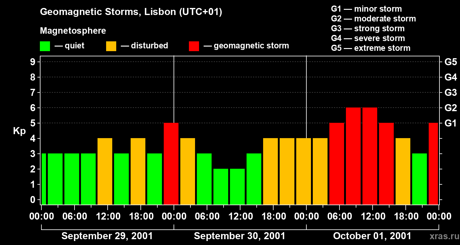 Geomagnetic storms in Lisbon on Oct 01, 2001