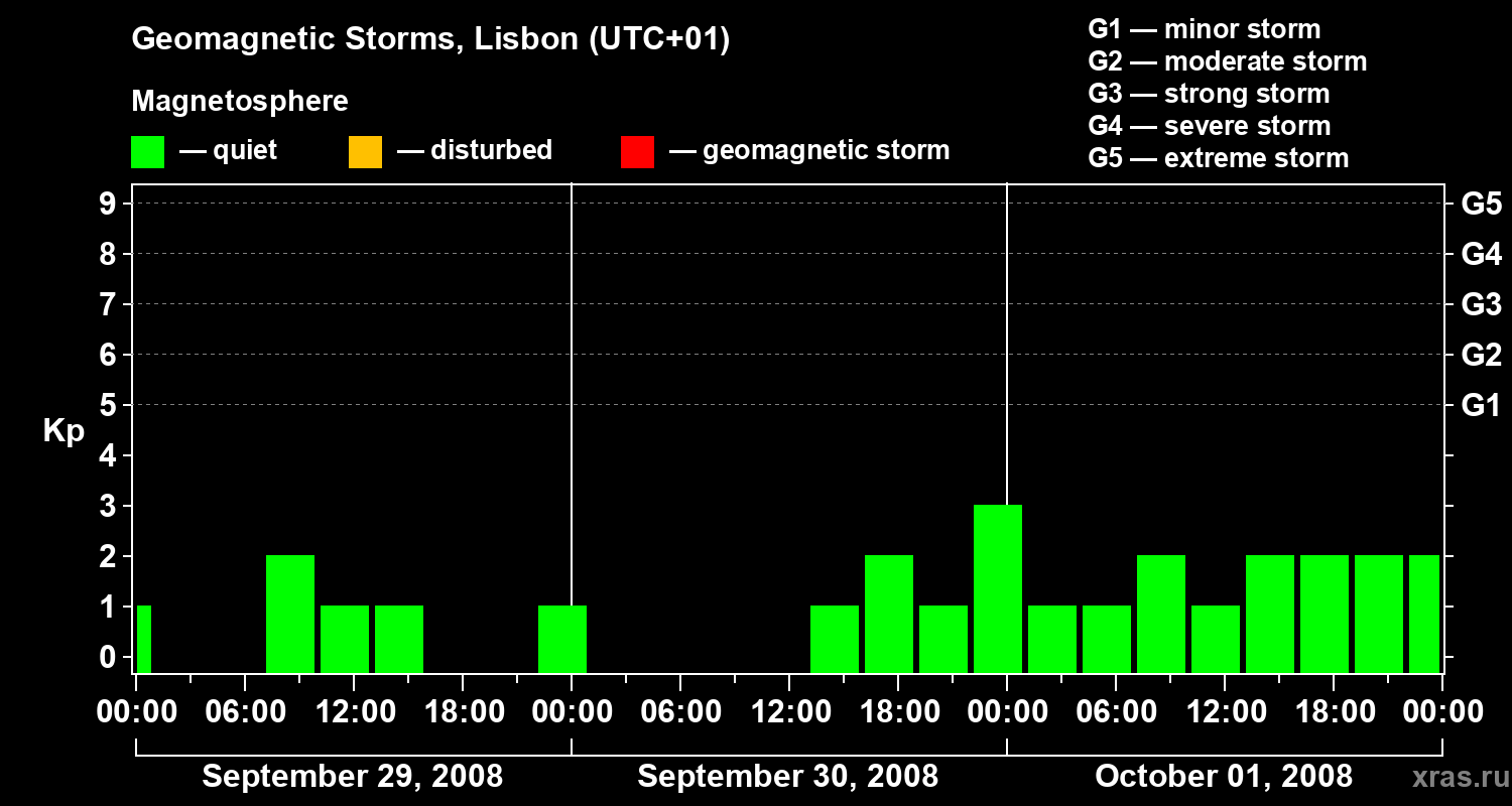 Geomagnetic storms in Lisbon on Oct 01, 2008