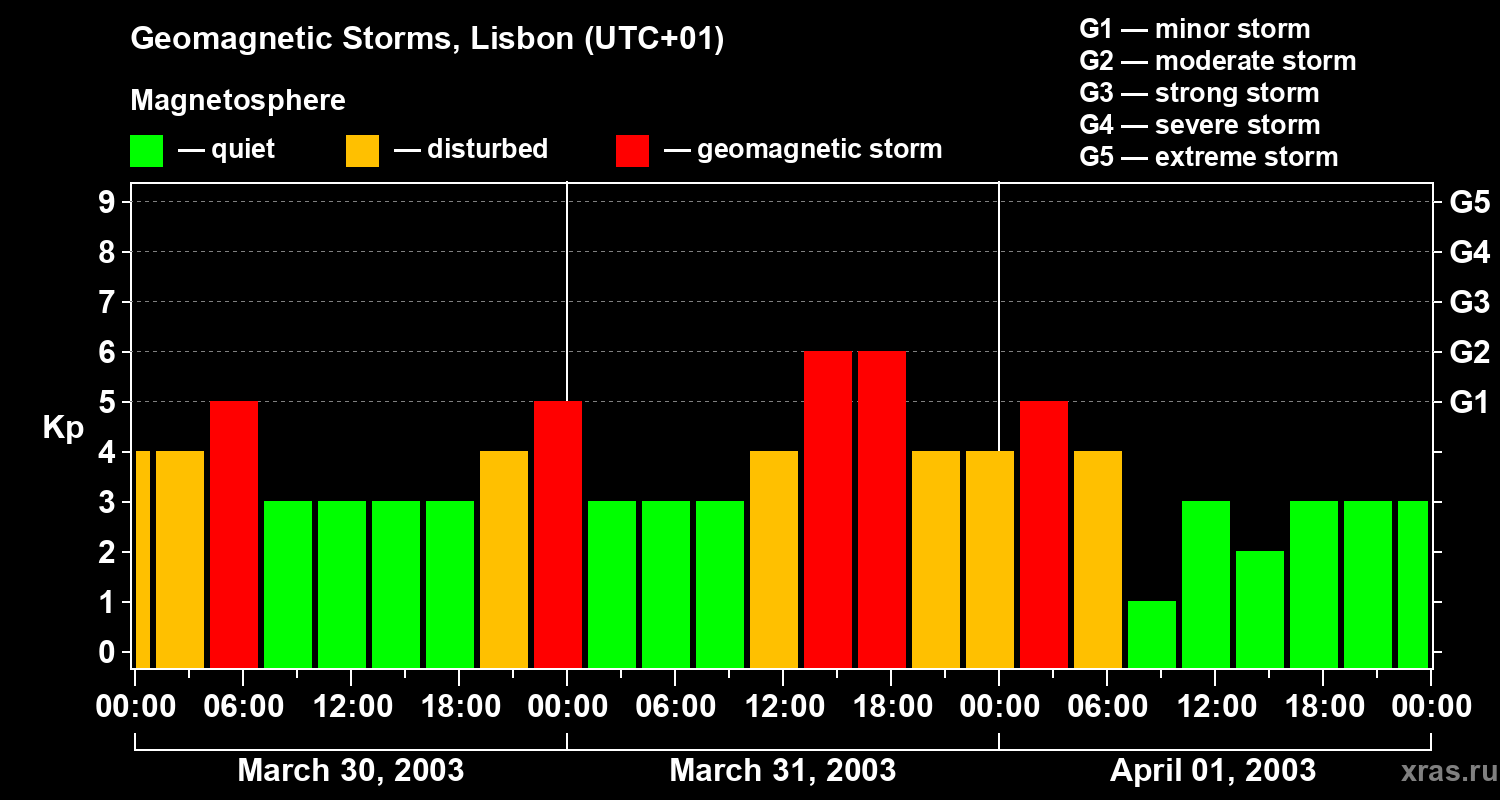 Geomagnetic storms in Lisbon on Apr 01, 2003