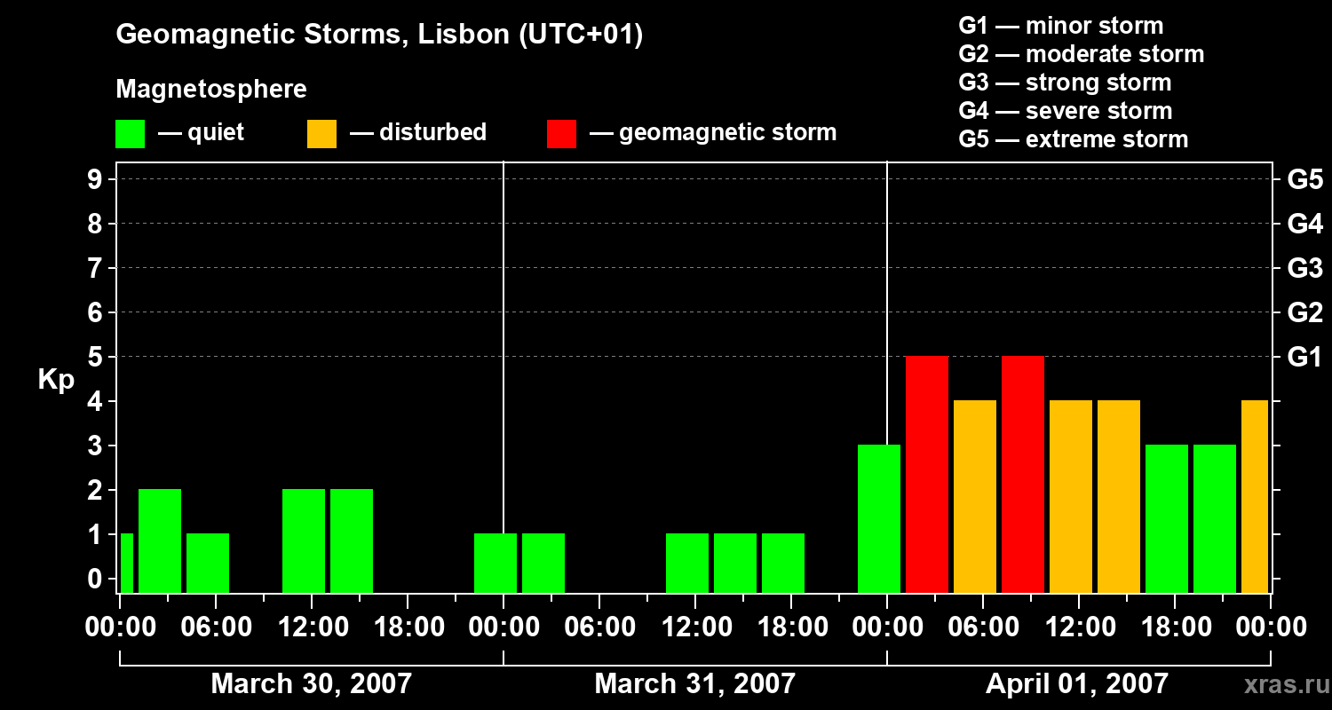 Geomagnetic storms in Lisbon — Apr 01, 2007