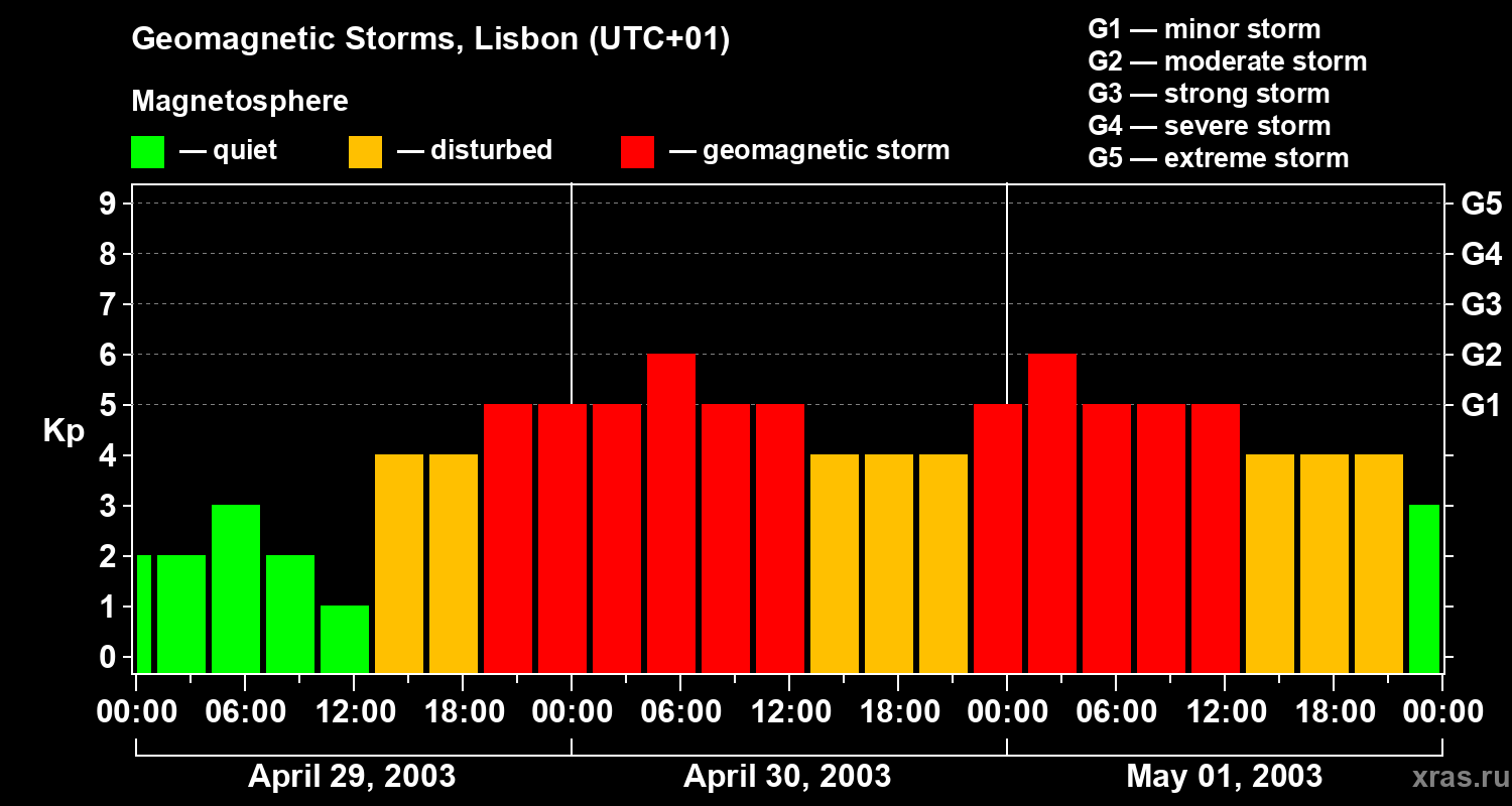 Geomagnetic storms in Lisbon on May 01, 2003