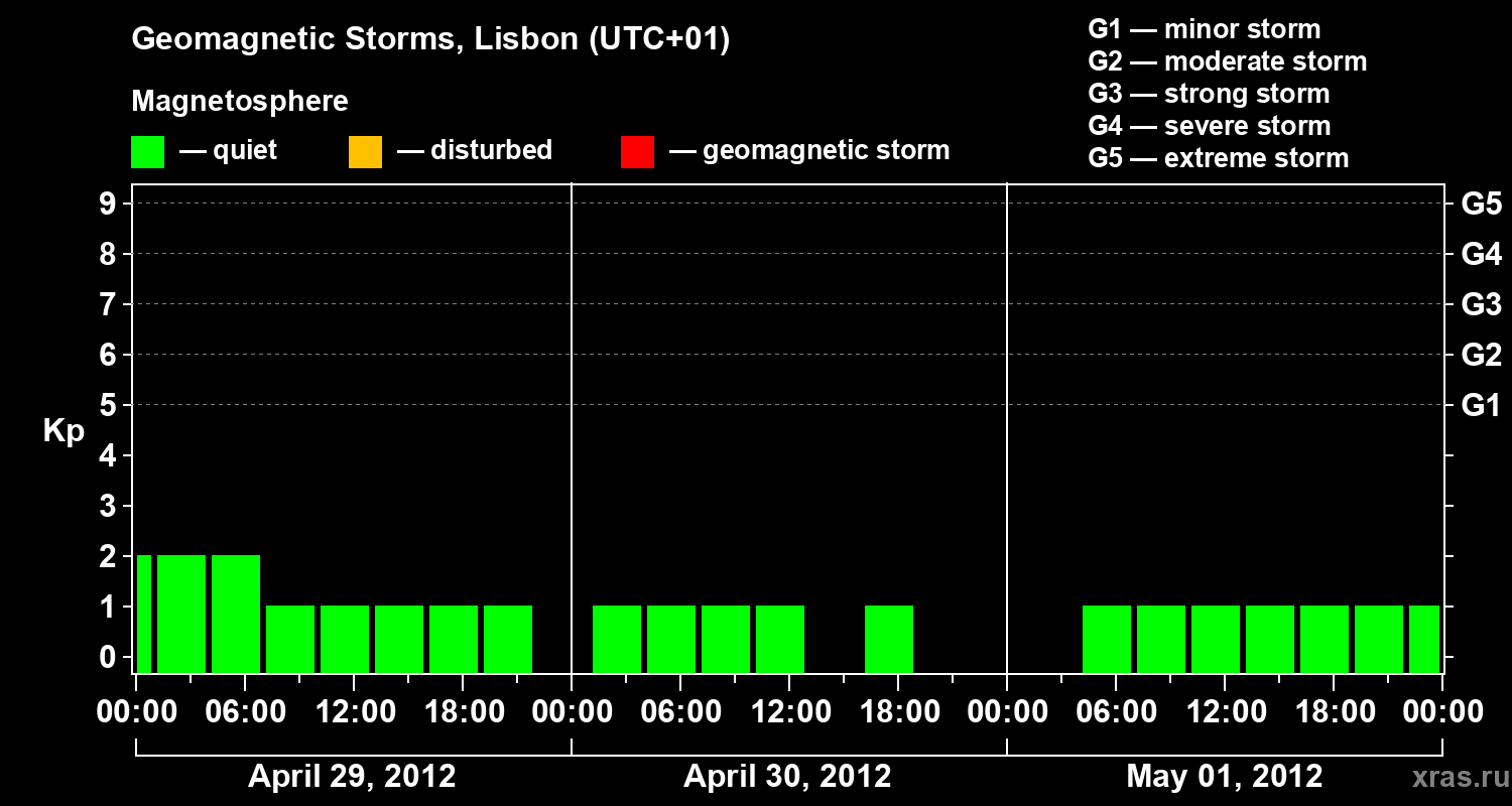 Changes in the geomagnetic index Kp from April 29 to May 1, 2012 for mid latitudes