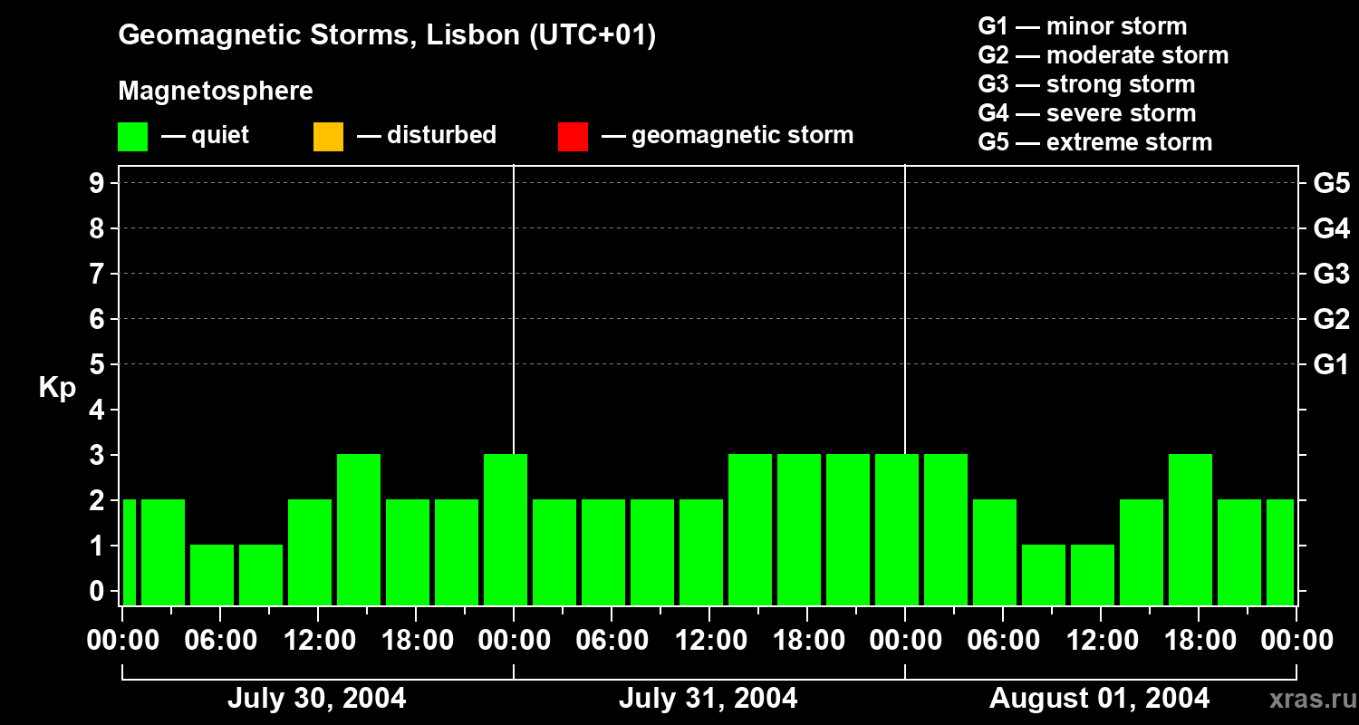 Geomagnetic storms in Lisbon on Aug 01, 2004