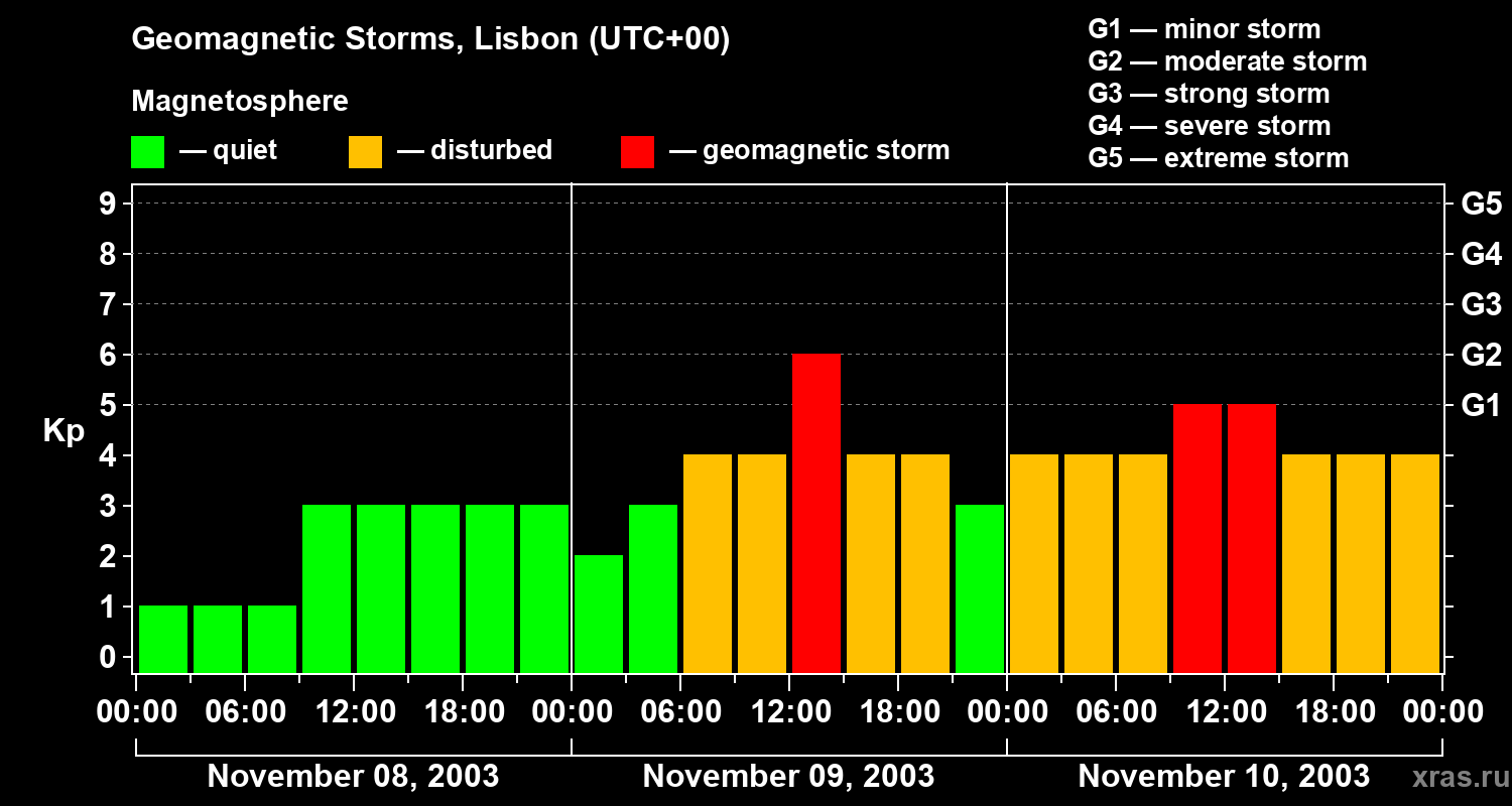 Geomagnetic storms in Lisbon — Nov 10, 2003