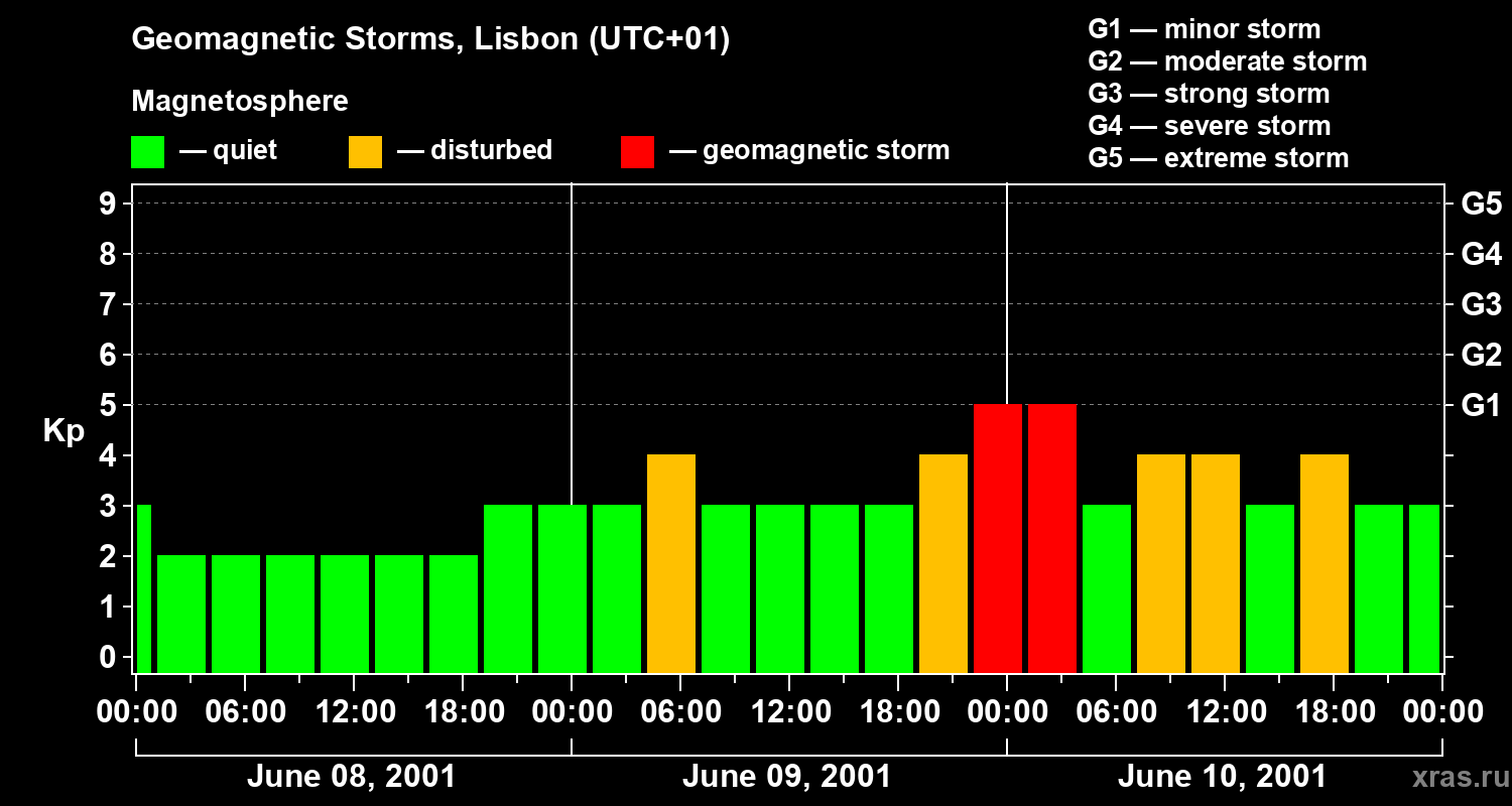 Geomagnetic storms in Lisbon on Jun 10, 2001