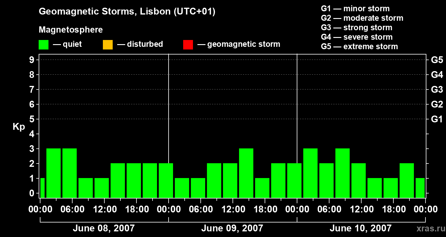 Geomagnetic storms in Lisbon on Jun 10, 2007