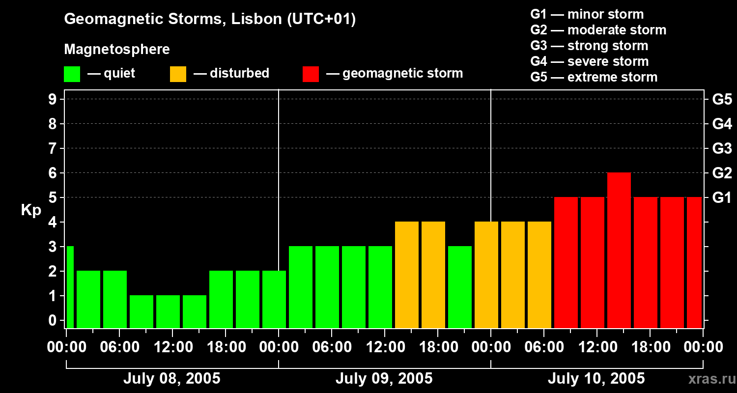 Geomagnetic storms in Lisbon on Jul 10, 2005