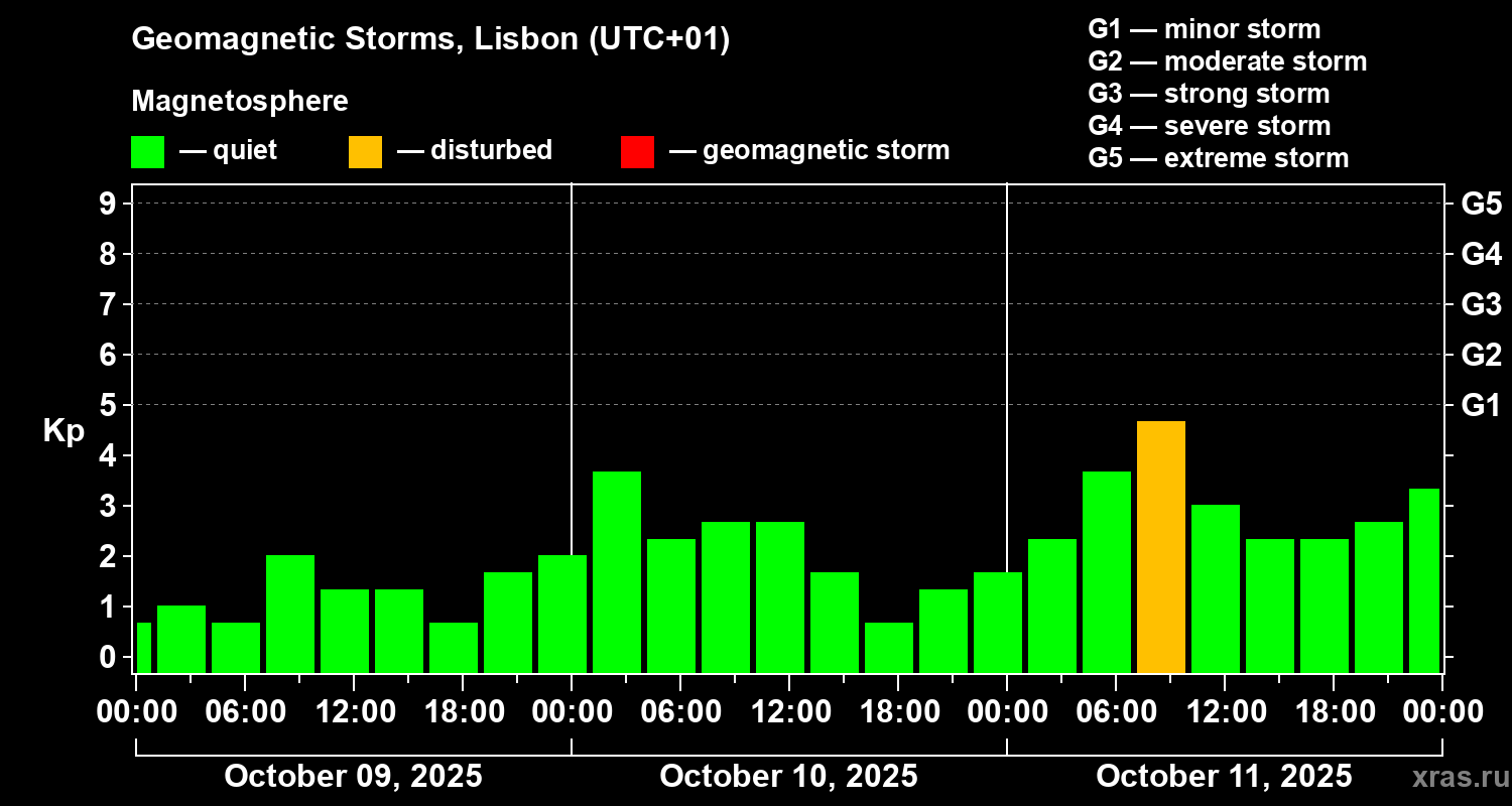 Geomagnetic storms in Lisbon — Oct 11, 2025
