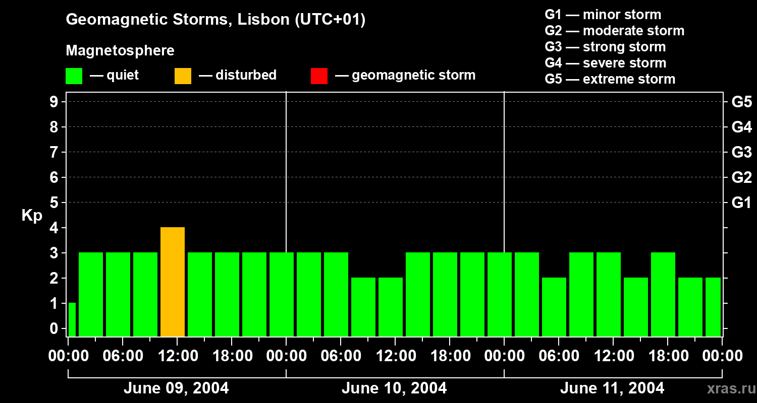 Geomagnetic storms in Lisbon on Jun 11, 2004