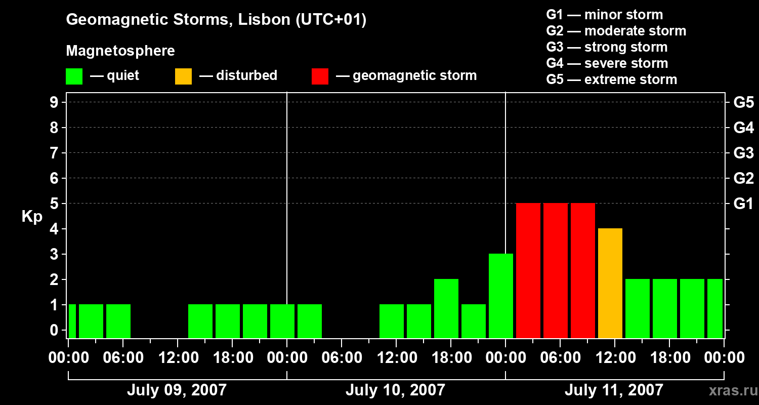 Geomagnetic storms in Lisbon — Jul 11, 2007