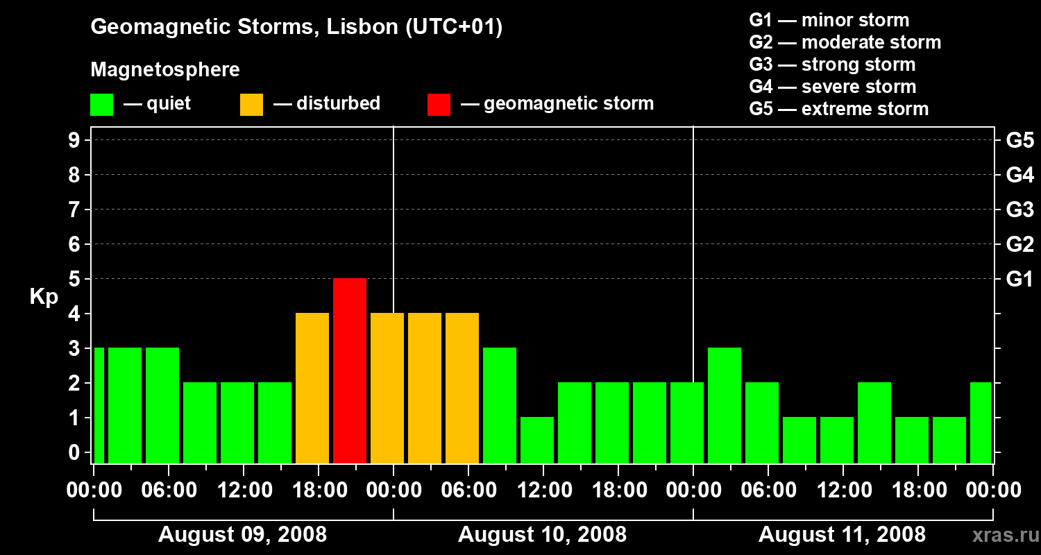 Geomagnetic storms in Lisbon — Aug 11, 2008