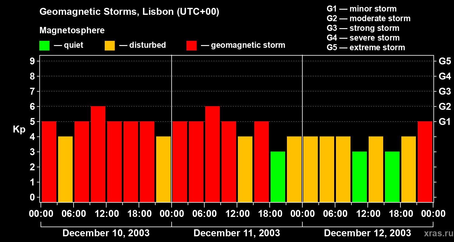 Geomagnetic storms in Lisbon — Dec 12, 2003