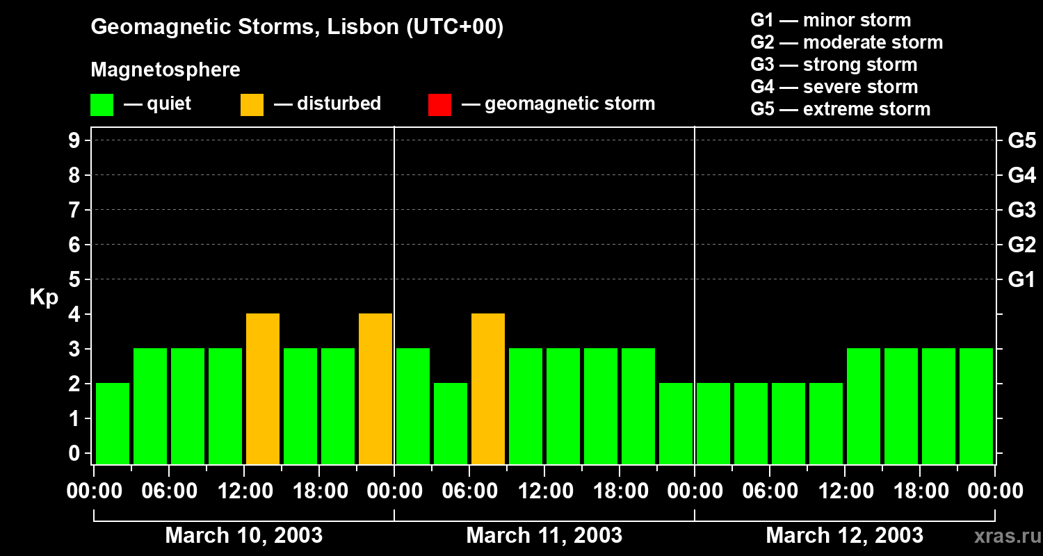 Geomagnetic storms in Lisbon — Mar 12, 2003