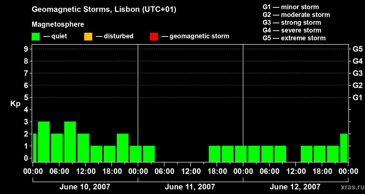 Geomagnetic storms in Lisbon on Jun 12, 2007