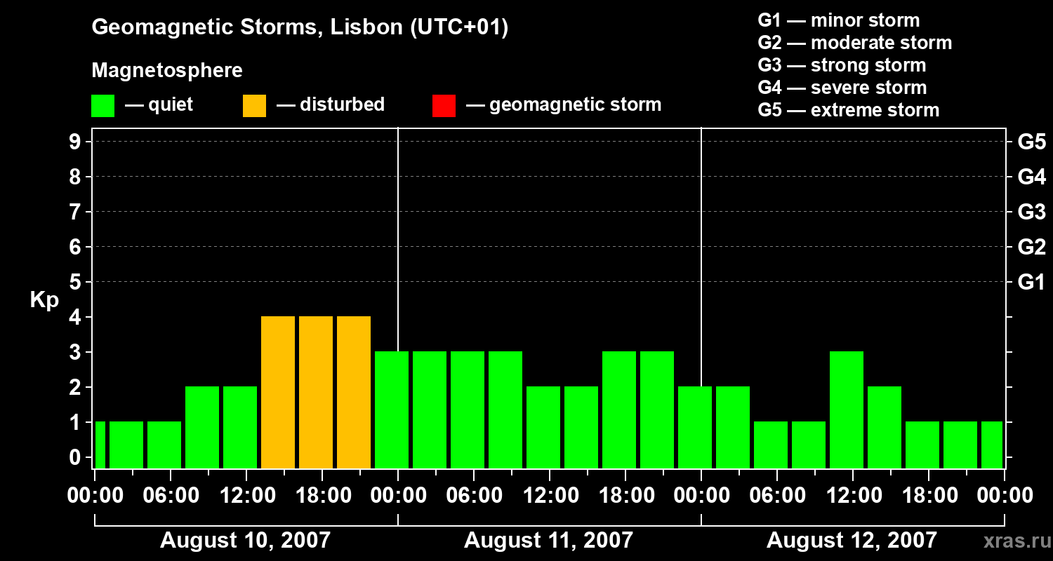 Geomagnetic storms in Lisbon — Aug 12, 2007