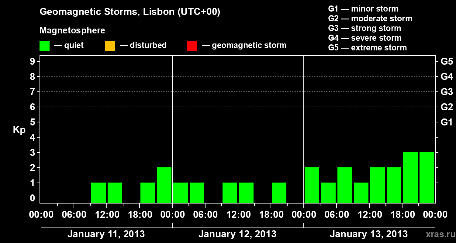 Geomagnetic storms in Lisbon — Jan 13, 2013