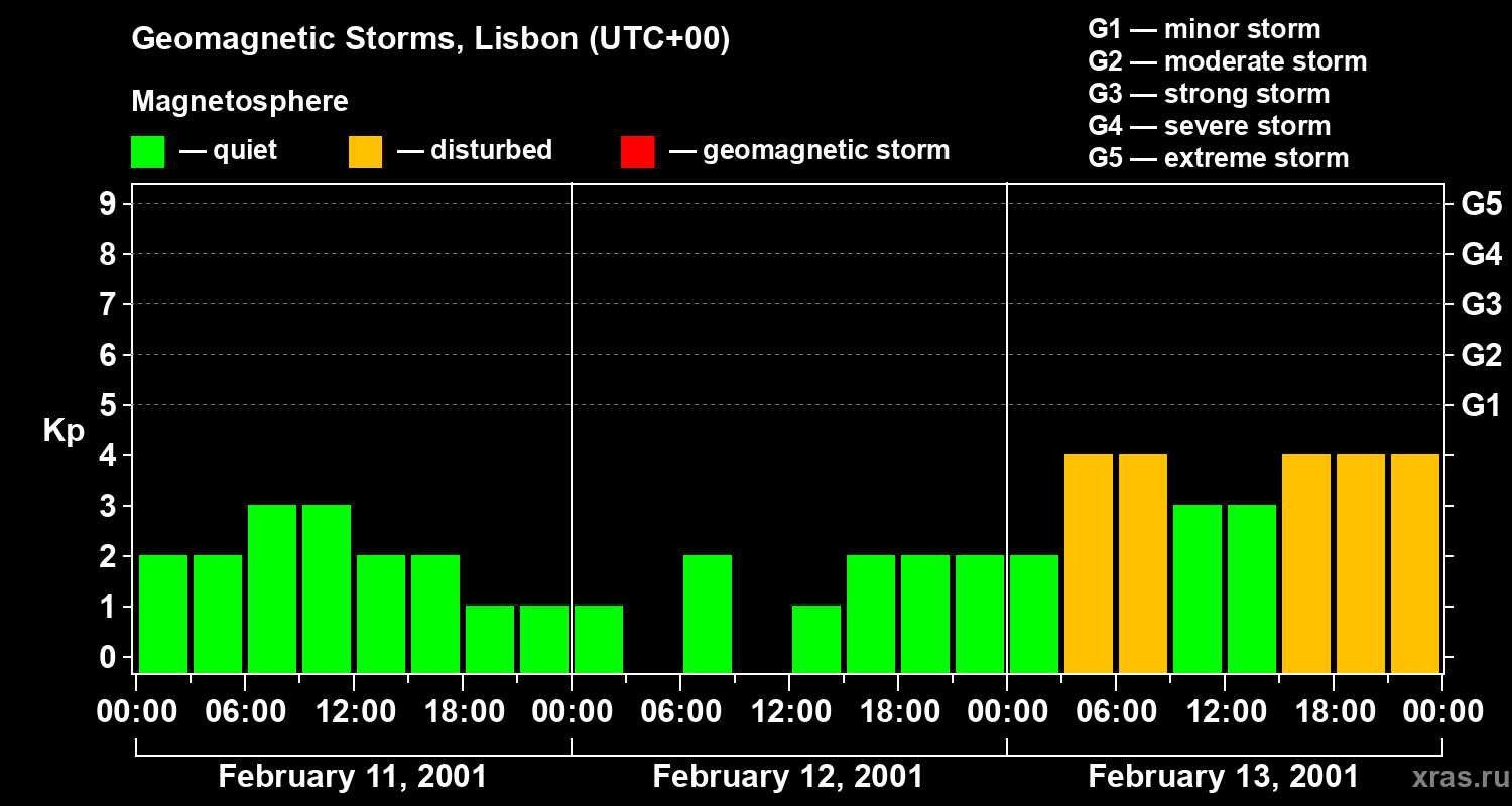 Geomagnetic storms in Lisbon — Feb 13, 2001