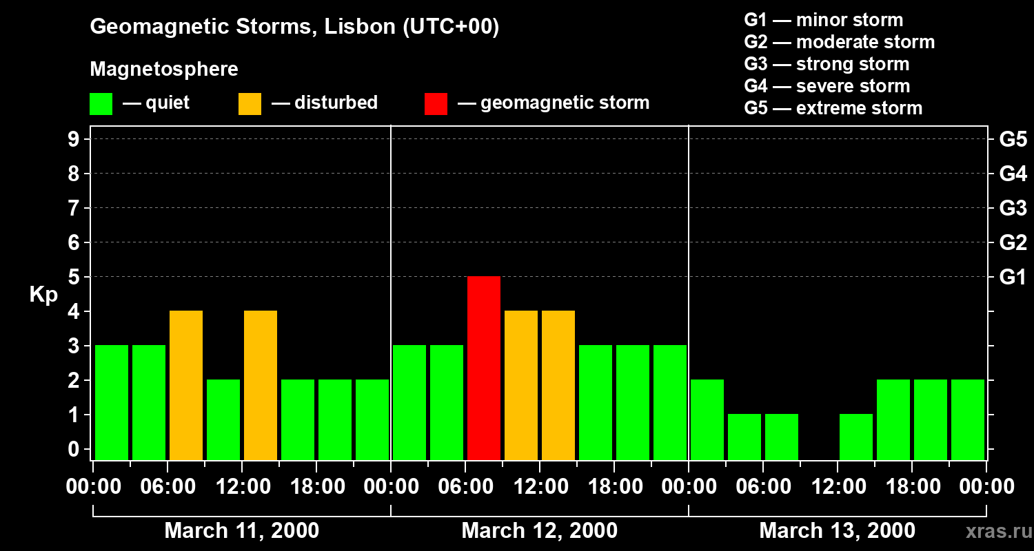 Geomagnetic storms in Lisbon — Mar 13, 2000