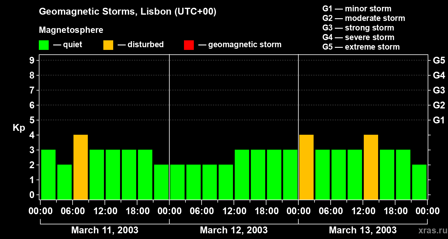 Geomagnetic storms in Lisbon — Mar 13, 2003
