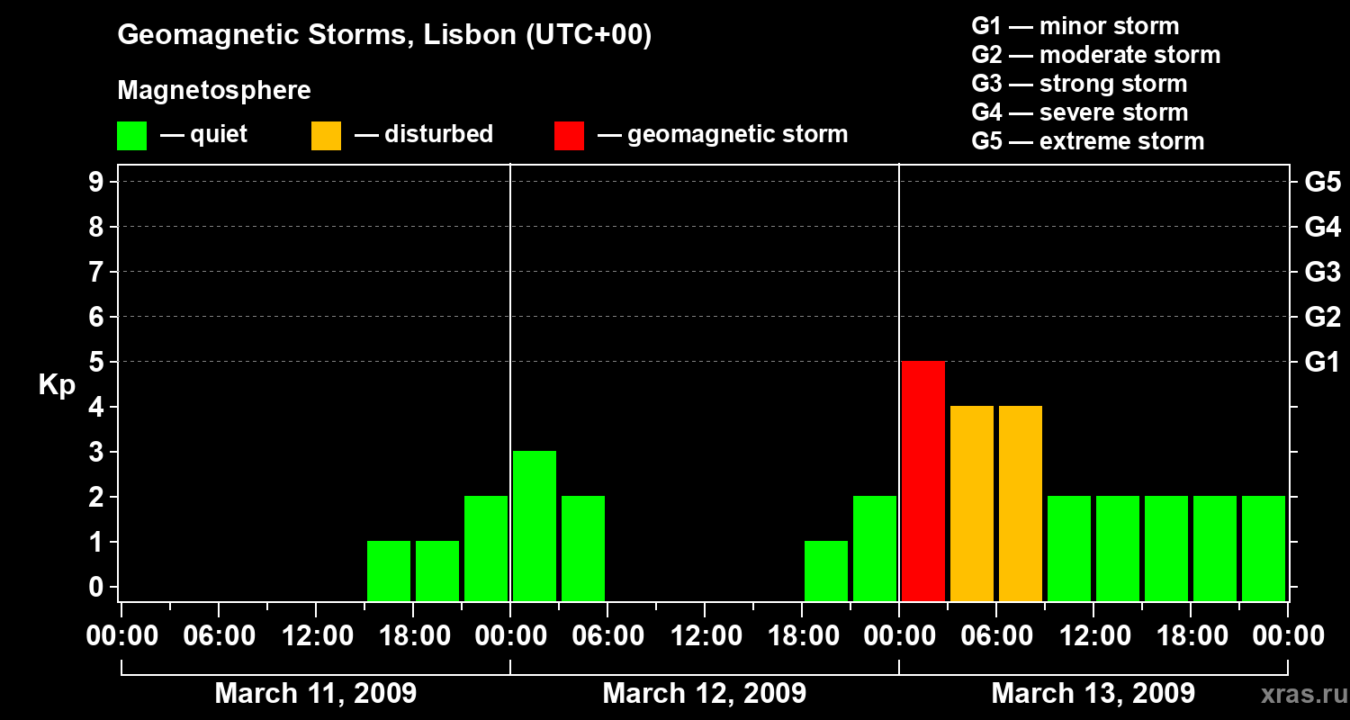Geomagnetic storms in Lisbon — Mar 13, 2009